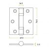 Dimensions : 076 x 067 x 2.5mm [height x width open x leaf thickness]