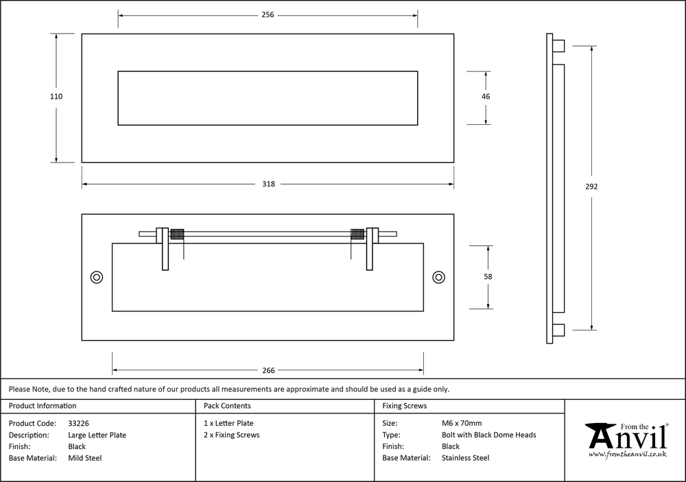 Our classic letterplates and covers are an attractive option for numerous door types. For more traditional doors, we offer a separate system in which the letterplate is fitted to the external face of the door, and a letterplate cover is fitted to the internal side to limit drafts. Combine with our matching Black door furniture to create a feature entrance. Maximum door thickness: 74mm. Supplied with matching 80mm threaded bolts with dome headed caps.