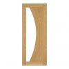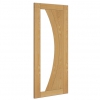 The rippling grain of crown cut oak veneer looks great against the Ravello's clean curved lines. This is a contemporary design, perfectly suited to the most modern of homes. A pane of curved, clear, toughened glass, provides light and a sense of space