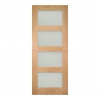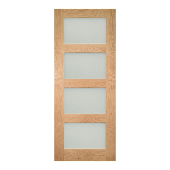 The Coventry oak door is equally at home in a farmhouse, cottage, apartment, newbuild, or townhouse. The minimalist style of this door is at once traditional and contemporary; striking and understated; rustic and sleek. The obscure glazed door features four evenly sized panels of laminated frosted glass within a simple veneer surround