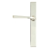 Our Avon lever handles are From The Anvil's signature design and are loved for their timeless simplicity. Each lever is hand-hammered into shape by our expert Blacksmiths to give it a contemporary, yet individual, edge. Designed to match the products in our Avon range. This handle has a strong double spring incorporated into its stylish boss design which provides both elegance and practicality. Lever handle for external doors where multi-point locking is not required, generally fitted to the slave door on French doors. Set includes an internal and external slimline lever latch handle. Suitable for use with a French door kit in conjunction with a slimline lever espag. lock set and Euro cylinder. Supplied with matching SS bolt through fixings.