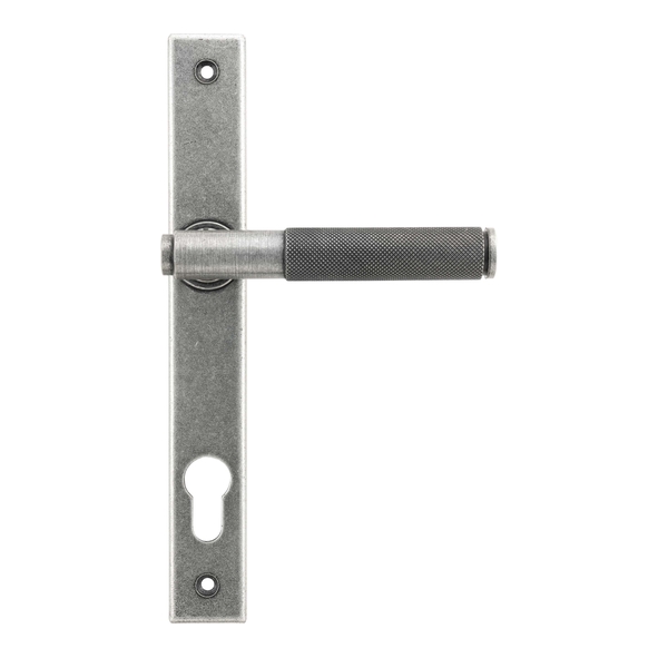 The contemporary Brompton suite features a textured, knurled surface. The industrial styling of the diamond pattern creates a modern range of products that can be used consistently throughout a property. Our Brompton lever handle range is forged from mild steel which emphasises the high quality materials and manufacturing techniques used. A perfect design choice to use throughout your property with many matching products available. This handle has a strong double spring incorporated into its stylish boss design which provides both elegance and practicality. Lever handle for external doors where multi-point locking is required. Set includes an internal and external lever espag lock handle. Suitable for use with a multi-point lock or French door kit in conjunction with a Euro cylinder. Supplied with matching SS bolt through fixings.
