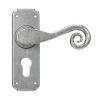 Our talented Blacksmiths heat and delicately hammer a thin piece of mild steel to form the curly, Monkeytail shape of this lever handle. One of our most traditional designs.