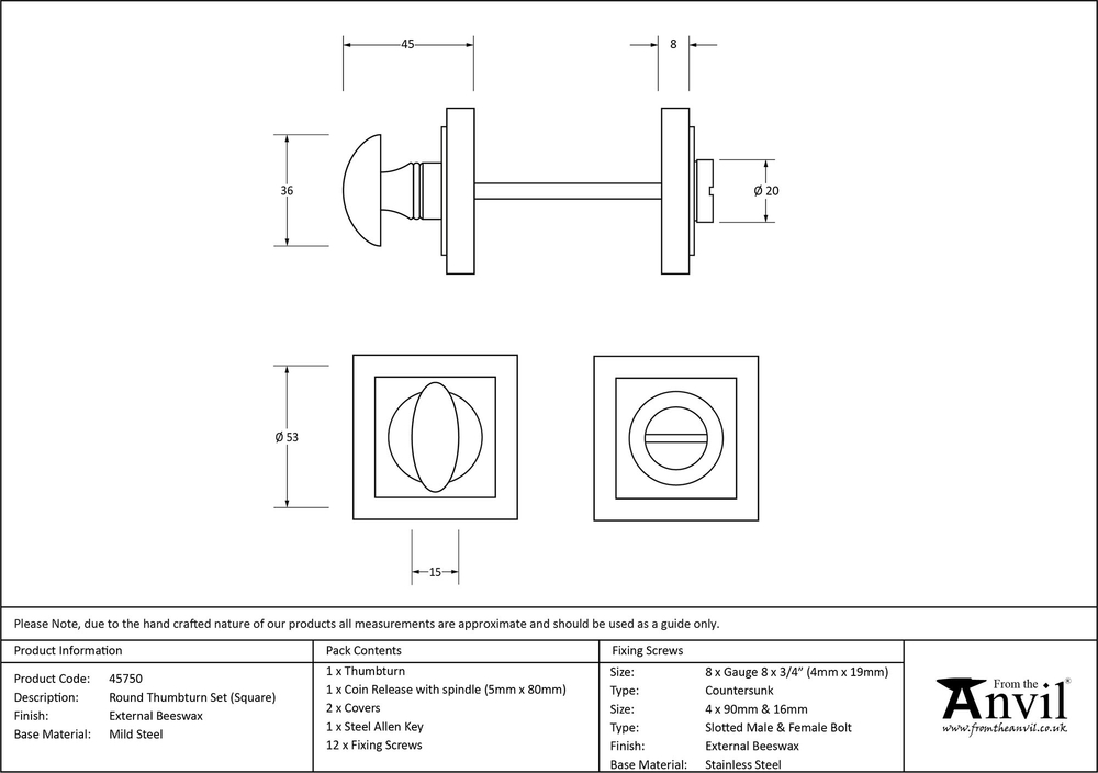 Fixing Plate : 53 x 53 x 8mm Thumbturn Size : 36 x 15mm Projection : 45mm Spindle Size : 5mm