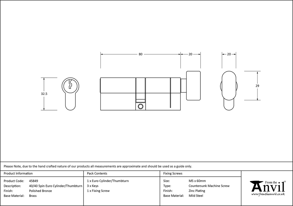 Suitable for use with our Euro or espag. lock handles, and in conjunction with a Euro sash or multi-point lock. A standard 5 pin Euro cylinder. Tested to BS1303 and is "Anti Pick", "Anti Snap", and "Anti Bump". Product is supplied with 3 keys and is 'Keyed to Differ'. Our range of Euro profile thumbturn cylinders require keyed access from outside, but have a thumbturn on the interior, meaning no key is required to lock the door from inside.