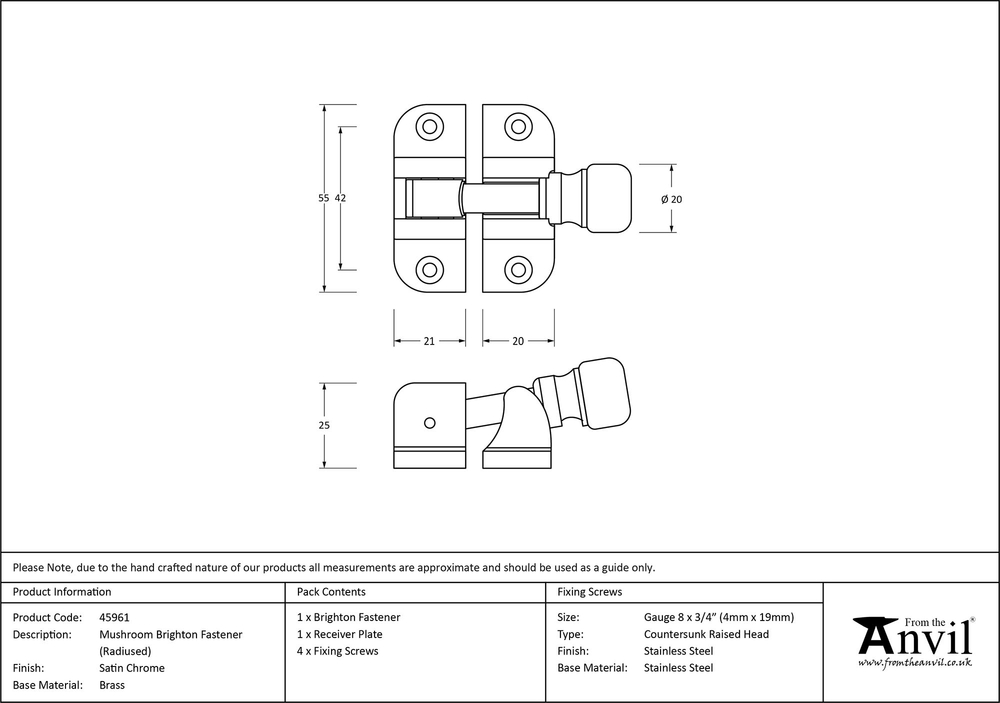 Our collection of sash furniture complements all other products within the range, allowing a consistent finish throughout a property or project. Designed to match the Mushroom door and cabinet furniture in the range. A classic brighton fastener with a narrow fixing plate, making it perfect for use on upvc sliding sash windows. The curved edges of the keep & fastener offer a subtle finish to the product. The keep is fitted to the bottom rail of your sash window, and the fastener secures into it when the window is in the closed position. Sold in singles. Supplied with matching SS wood screws.