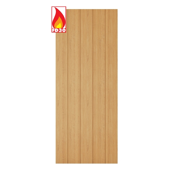 With beautiful crown cut oak veneer overlaying a solid core, the Galway oak door is the perfect combination of strength and good looks. The solid door consists simply of five bevel-cut vertical panels that showcase the glorious oak veneer grain