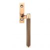 The contemporary Brompton suite features a textured, knurled surface. The industrial styling of the diamond pattern creates a modern range of products that can be used consistently throughout a property. Our Brompton window furniture is hand forged from solid bronze to create a product that's as beautiful as it is hardwearing. A perfect design choice to use throughout your property with many matching products available. Due to their slim fixing plates, our espagnolettes can be fitted on any type of window including uPVC and timber. Designed to match the products in our Brompton range. The product is handed and therefore care needs to be taken when choosing the correct hand. From the inside view, if your window is hinged on the right then a right-hand fastener is required. They have a 7mm² x 40mm spindle and can be locked by way of a grub screw. Suitable for use with an espagnolette gearbox and window lock. Supplied with matching SS M5 screws.