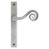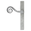 Our talented Blacksmiths heat and delicately hammer a thin piece of mild steel to form the curly, Monkeytail shape of this lever handle. One of our most traditional designs.