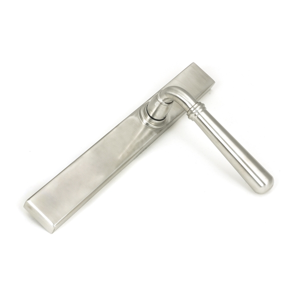 The Newbury range is sleek and elegant, with a slender design that suits a variety of property types. Our weighty Newbury lever handle range is forged from marine grade stainless steel which emphasises the high quality materials and manufacturing techniques used. A perfect design choice to use throughout your property with many matching products available. This handle has a strong double spring incorporated into the stylish boss design to give both functionality & elegance. Lever handle for external doors where multi-point locking is required. Set includes an internal and external lever espag latch handle. Suitable for use with a French door kit in conjunction with a slimline lever espag. lock set and Euro cylinder. Supplied with matching SS bolt through fixings.