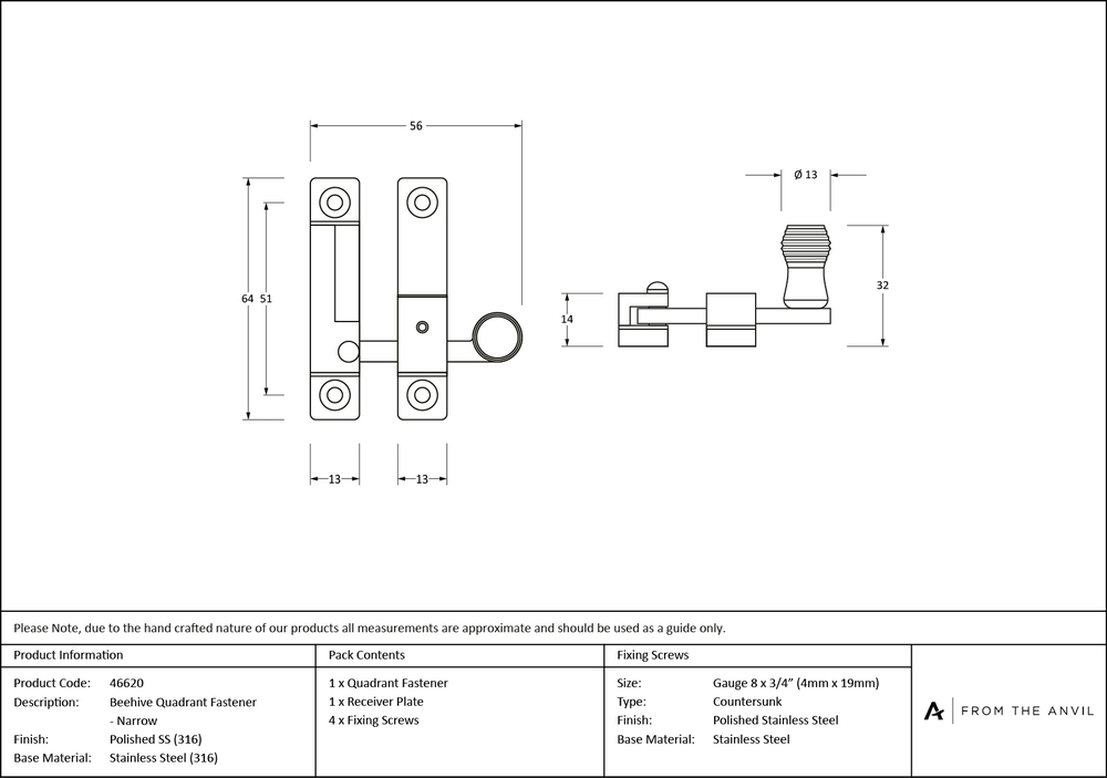 Our collection of sash furniture complements all other products within the range, allowing a consistent finish throughout a property or project. Designed to match the Beehive door and cabinet furniture in the range. A stylish quadrant fastener used to secure your sash window. Ideal for use on a narrow top rail due to a thin fixing keep. The fastener has a locking mechanism by way of a grub screw. Sold in singles. Supplied with matching SS wood screws.