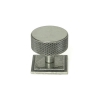 This cabinet knob features a simple square rose which adds an angular contrast to the round knob.