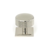 This cabinet knob features a simple square rose which adds an angular contrast to the round knob.