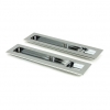 Our range of sliding door furniture is suitable for all sliding, pocket, and flush door systems. The Plain design matches a number of other products in the range. Maximum door thickness: 45mm. Longer thumbturn spindles available on request. Minimum door thickness: 35mm. Set includes 2 Rectangular pull handles and coin and release thumbturn. Can be used with a sliding door lock. Available in two sizes. Supplied with matching SS wood screws.