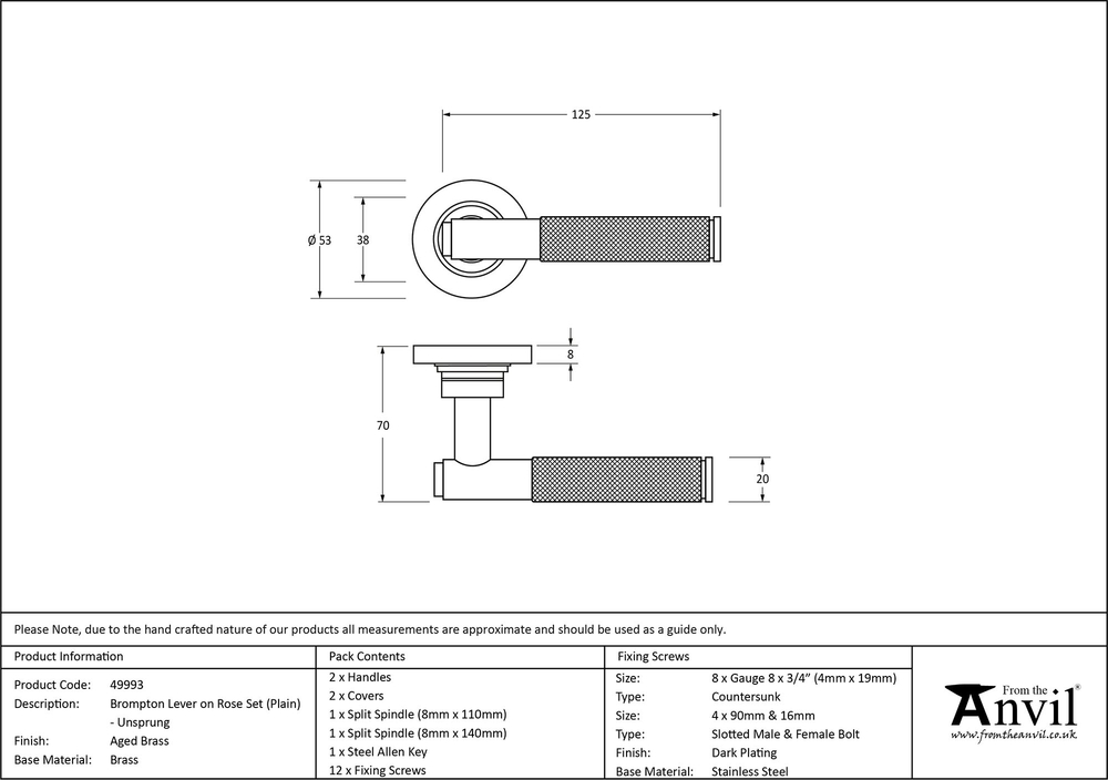 Rose Size : 53mm x 8mm Handle Length : 125mm Fixing Centres : 38mm