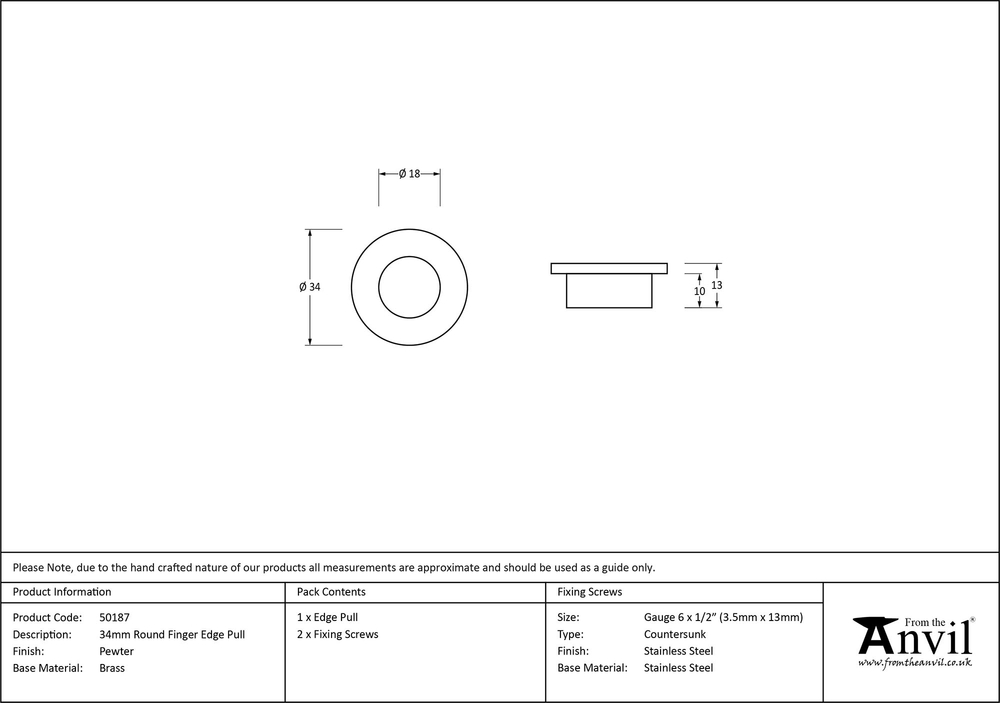 Overall Size : 34mm dia Internal Size : 18mm dia Projection : 13mm