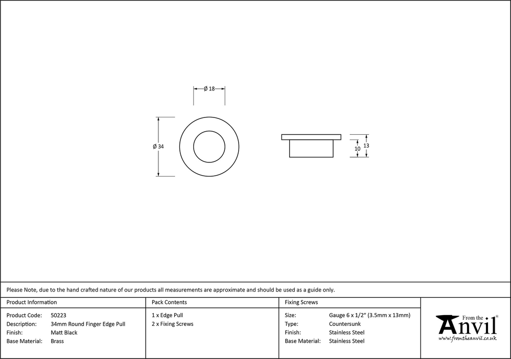 Overall Size : 34mm dia Internal Size : 18mm dia Projection : 13mm