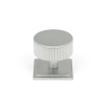 This cabinet knob features a simple square rose which adds an angular contrast to the round knob.