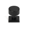 This cabinet knob features a simple square rose which adds an angular contrast to the round knob.