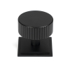 This cabinet knob features a simple square rose which adds an angular contrast to the round knob.