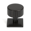 This cabinet knob features a simple square rose which adds an angular contrast to the round knob.