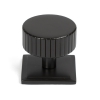 This cabinet knob features a simple square rose which adds an angular contrast to the round knob.