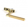 The contemporary Brompton suite features a textured, knurled surface. The industrial styling of the diamond effect creates a modern range of products that can be used throughout your property. Our Brompton window handle range is forged from solid brass which emphasises the high quality materials and manufacturing techniques used. A perfect design choice to use throughout your property with many matching products available. Designed to fit any type of window, including uPVC and timber due to its slim fixing plate. Can be matched with the Brompton stays and door handles in the range. The product is handed and therefore care needs to be taken when choosing the correct hand. From the inside view, if your window is hinged on the left then a left-hand fastener is required. They have a 7mm² x 40mm spindle and can be locked by way of a grub screw. Can be used with an espagnolette gearbox & window lock. Supplied with matching SS M5 screws.