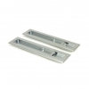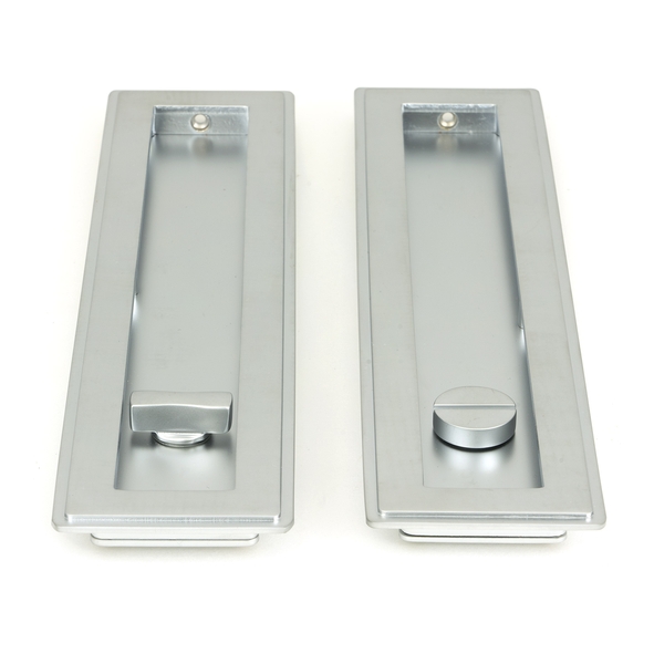 Our range of sliding door furniture is suitable for all sliding, pocket, and flush door systems. The stepped Art Deco design matches a number of other products in the range. Maximum door thickness: 45mm. Longer thumbturn spindles available on request. Minimum door thickness: 35mm. Set includes 2 Rectangular pull handles and coin and release thumbturn. Can be used with a sliding door lock. Available in two sizes. Supplied with matching SS wood screws.