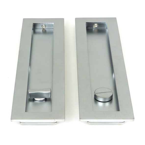 Our range of sliding door furniture is suitable for all sliding, pocket, and flush door systems. The Plain design matches a number of other products in the range. Maximum door thickness: 45mm. Longer thumbturn spindles available on request. Minimum door thickness: 35mm. Set includes 2 Rectangular pull handles and coin and release thumbturn. Can be used with a sliding door lock. Available in two sizes. Supplied with matching SS wood screws.