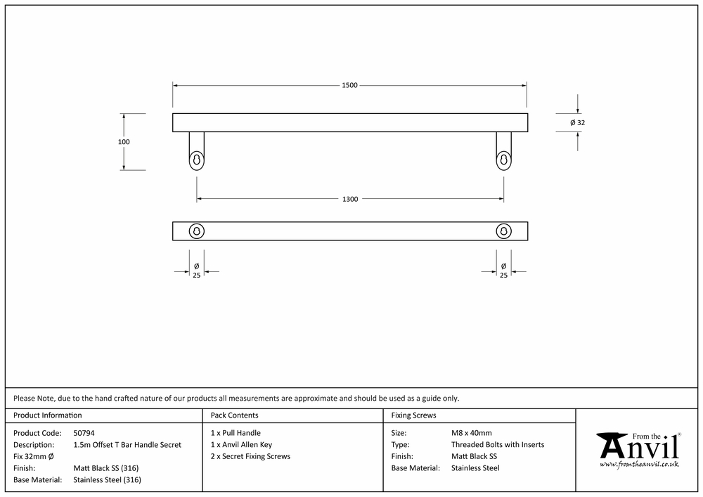 Overall Length : 1500mm Diameter : 32mm Fixing Centre : 1300mm Projection : 80mm