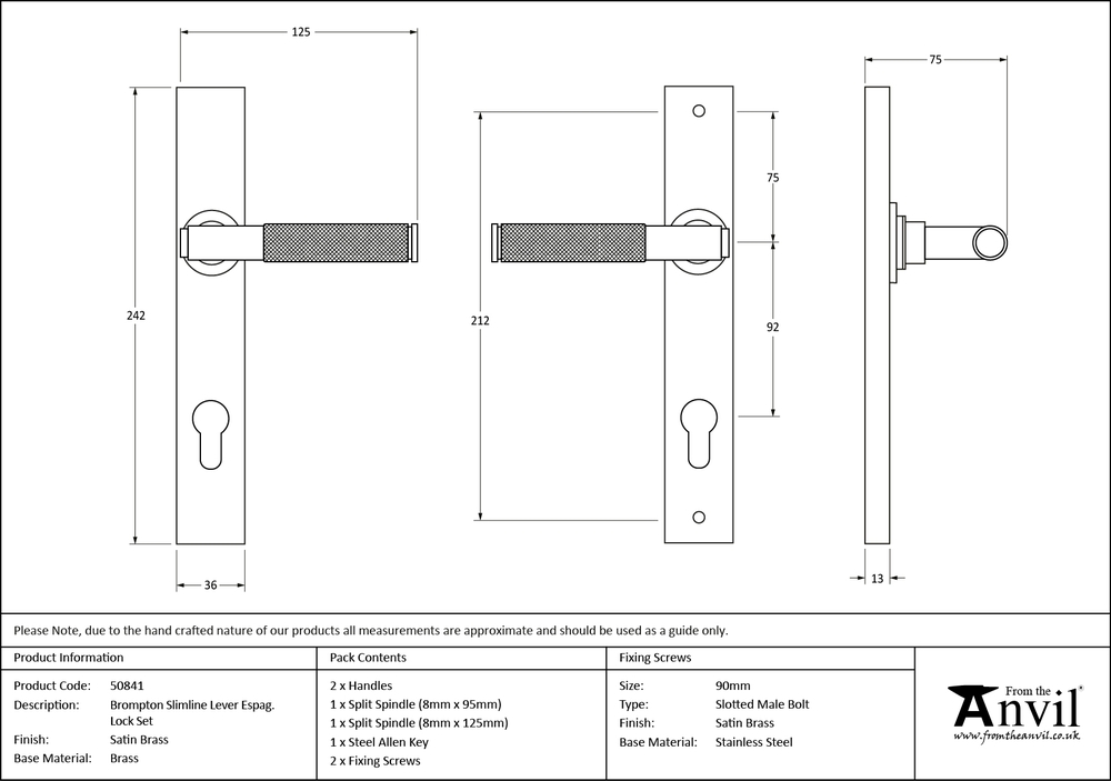 Backplate Size : 242 x 36 x 13mm Handle Length : 125mm Centres : 92mm Fixing Centres : 212mm