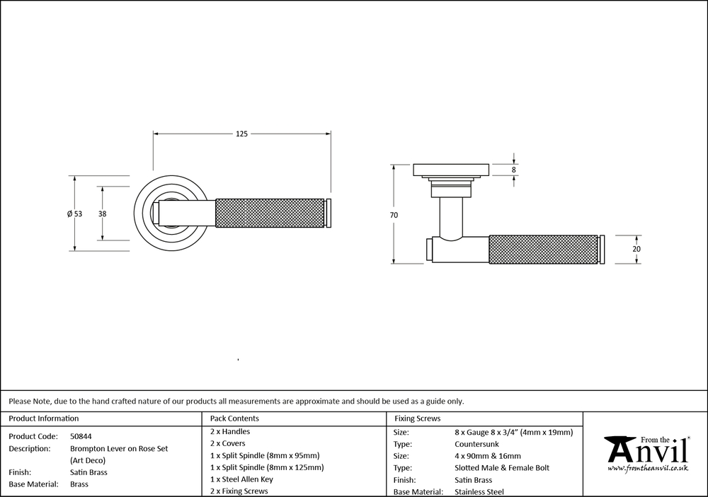 Rose Size : 53mm x 8mm Handle Length : 125mm Fixing Centres : 38mm