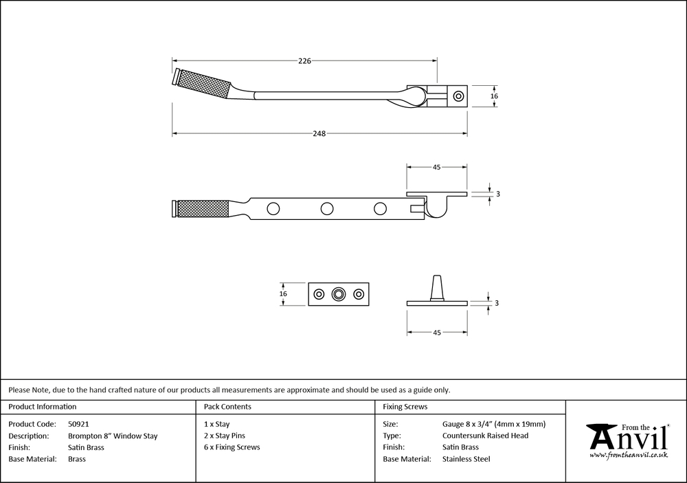 Overall Length : 248mm Stay arm : 226mm Fixing plate : 45 x 16mm