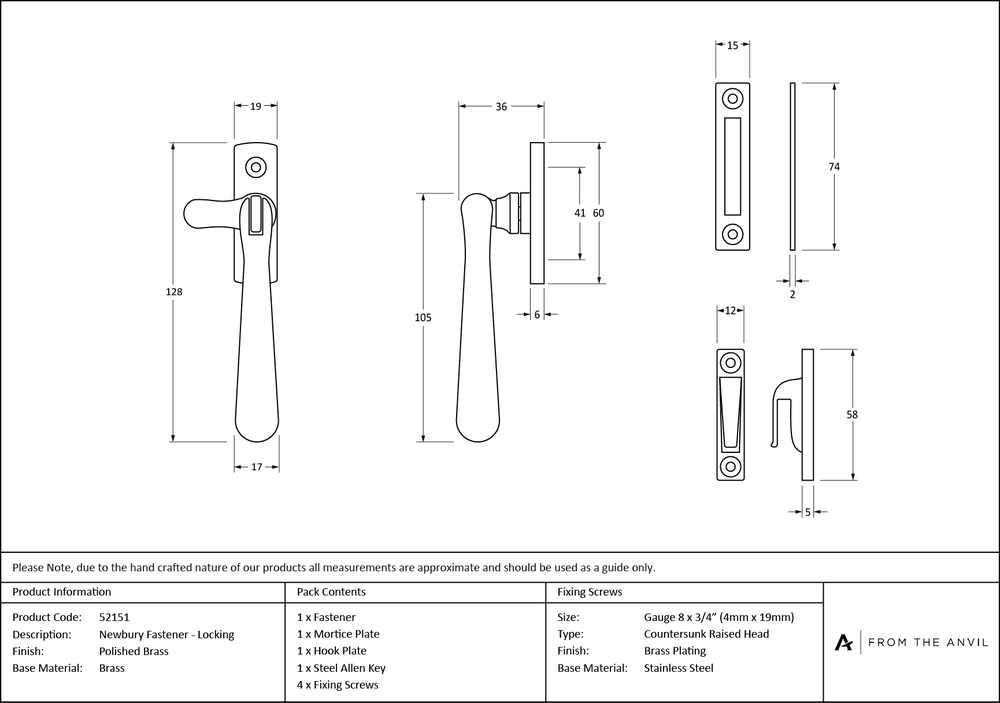 The Newbury range is sleek and elegant, with a slender design that suits a variety of property types. Our weighty range of Newbury window furniture is hand forged from solid brass to create a product that's as beautiful as it is hardwearing. A perfect design choice to use throughout your property with many matching products available. Designed to fit casement windows and to match the products in our Newbury range. Reversible design and includes mortice and hook plates for different fitting options. The locking mechanism operates by way of grub screw. Suitable for use with weather-stripped windows. Supplied with matching SS wood screws.