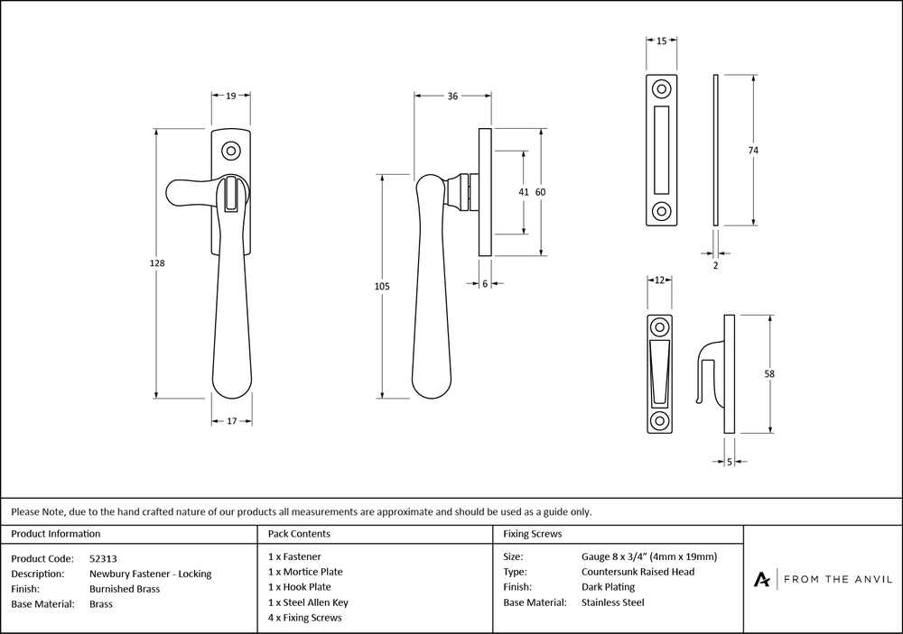The Newbury range is sleek and elegant, with a slender design that suits a variety of property types. Our weighty range of Newbury window furniture is hand forged from solid brass to create a product that's as beautiful as it is hardwearing. A perfect design choice to use throughout your property with many matching products available. Designed to fit casement windows and to match the products in our Newbury range. Reversible design and includes mortice and hook plates for different fitting options. The locking mechanism operates by way of grub screw. Suitable for use with weather-stripped windows. Supplied with matching SS wood screws.