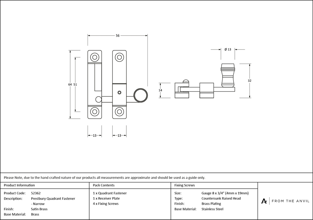 Our collection of sash furniture complements all other products within the range, allowing a consistent finish throughout a property or project. Designed to match the Prestbury door and cabinet furniture in the range. A stylish quadrant fastener used to secure your sash window. Ideal for use on a narrow top rail due to a thin fixing keep. The fastener has a locking mechanism by way of a grub screw. Sold in singles. Supplied with matching SS wood screws.