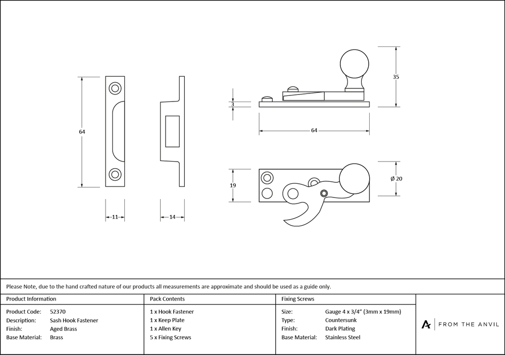Fixing plate : 64 x 19mm Keep Plate : 64 x 11mm Projection : 35mm