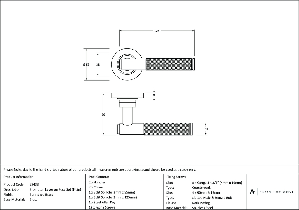 52433 • 53 x 8mm • Burnished Brass • From The Anvil Brompton Lever on Rose [Plain]
