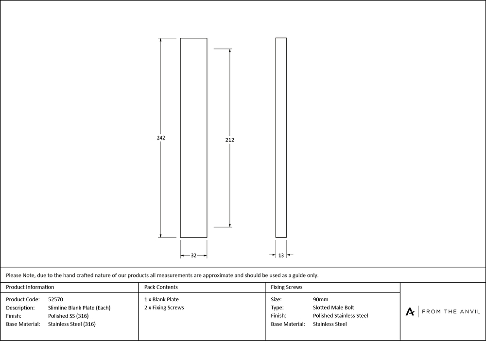 Backplate Size : 242 x 32 x 13mm Fixing Centres : 212mm