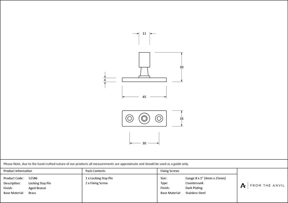For use with any of our stays when locking is required. Replace one standard stay pin with a locking pin for added security. Sold in singles. Supplied with matching SS wood screws.
