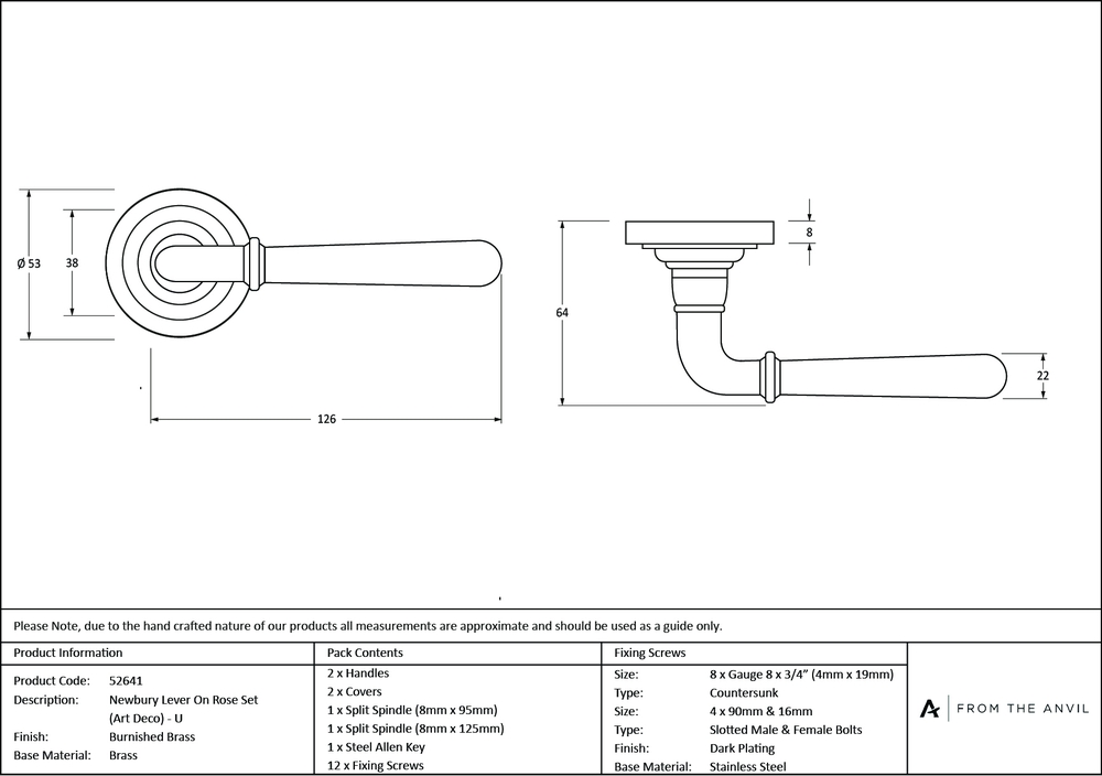 The Newbury range is sleek and elegant, with a slender design that suits a variety of property types. Our weighty Newbury lever handle range is forged from solid brass which emphasises the high quality materials and manufacturing techniques used. A perfect design choice to use throughout your property with many matching products available. This concealed lever handle features a stepped Art Deco rose which matches a number of other products in our range and adds a contemporary edge to a traditional looking product. The handle is unsprung and is available on a 2 week lead time. Lever handle for internal and external doors where locking is either required or not required. Set includes two concealed lever on rose handles. Suitable for use with a multitude of standard locks, Euro locks, latches, escutcheons, and thumbturns for various purposes. Supplied with matching SS bolt through fixings & SS wood screws.