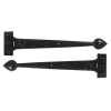 When opened, a T hinge has the appearance of the letter 'T'. An alternative to butt hinges, T hinges are usually used in conjunction with a Suffolk latch on traditional plank doors.