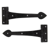 When opened a tee hinge has the appearance of a letter 'T'. An alternative to butt hinges, tee hinges are usually used in conjunction with a suffolk latch on traditional plank doors.