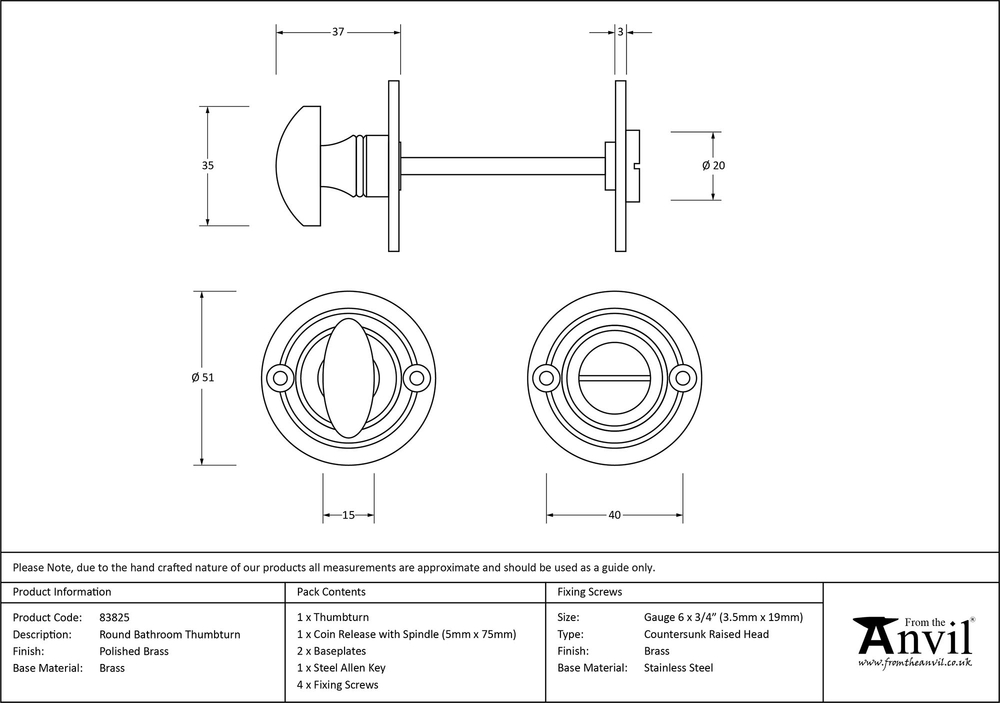 Fixing Plate : 50 x 3mm Thumbturn Size : 35 x 15mm Projection : 37mm Spindle Size : 5mm
