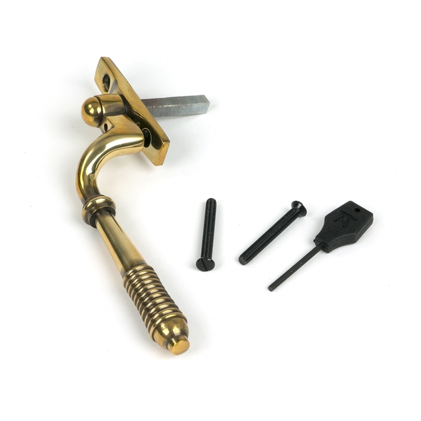 This Reeded espag. features a classic regency design with a stylish, reeded end which is suited to traditional and contemporary settings alike. Our weighty Reeded espag is forged from solid brass. The reeded part of the handle accentuates the hand finishing carried out by our expert craftsmen. A perfect design choice for any home, with many matching products available. Due to their slim fixing plates, our espagnolettes can be fitted on any type of window including uPVC and timber. Designed to match the products in our Reeded range. The product is handed and therefore care needs to be taken when choosing the correct hand. From the inside view, if your window is hinged on the left then a left-hand fastener is required. They have a 7mm² x 40mm spindle and can be locked by way of a grub screw. Suitable for use with an espagnolette gearbox and window lock. Supplied with matching SS M5 screws.