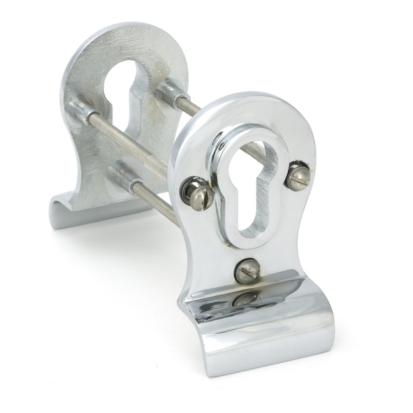 Our Euro door pulls can be used to push/pull doors into an open/closed position, and are designed to be fitted with our Euro cylinders. Our back-to-back Euro pull is forged from solid brass which highlights all the hand finished details of its design. A perfect choice for external doors, with many matching products available. Designed to match our other Polished Chrome front door furniture to create a feature entrance. This door pull is used with a Euro profile lock in conjunction with a Euro cylinder. Maximum door thickness: 64mm. Sold with matching bolt-through fixings which are concealed from the external side of the door.