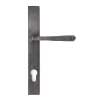 Our Avon lever handles are From The Anvil's signature design and are loved for their timeless simplicity. Each lever is hand-hammered into shape by our expert Blacksmiths to give it a contemporary, yet individual, edge. Designed to match the products in our Avon range. This handle has a strong double spring incorporated into its stylish boss design which provides both elegance and practicality. Lever handle for external doors where multi-point locking is required. Set includes an internal and external lever espag lock handle. Suitable for use with a multi-point lock or French door kit in conjunction with a Euro cylinder. Supplied with matching SS bolt through fixings.