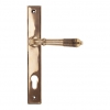 The reeded set is part of the period range of sprung lever handles. A classic regency lever with a stylish reeded end that will suit both traditional and contemporary settings. Our weighty reeded lever handle range is forged from solid bronze. The reeded part of the handle highlights all of the hand finishing that is carried out in our factory. A perfect design choice to use throughout your property with many matching products available. This handle has a strong double spring incorporated into the stylish boss design to give both functionality & elegance. Lever handle for external doors where multi-point locking is required. Set includes an internal and external lever espag lock handle. Can be used with a multi-point lock or French door kit in conjunction with a Euro cylinder. Supplied with matching SS bolt through fixings.