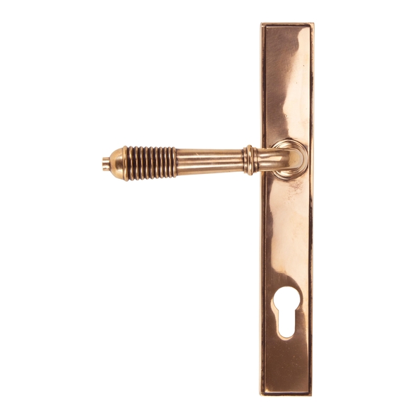The reeded set is part of the period range of sprung lever handles. A classic regency lever with a stylish reeded end that will suit both traditional and contemporary settings. Our weighty reeded lever handle range is forged from solid bronze. The reeded part of the handle highlights all of the hand finishing that is carried out in our factory. A perfect design choice to use throughout your property with many matching products available. This handle has a strong double spring incorporated into the stylish boss design to give both functionality & elegance. Lever handle for external doors where multi-point locking is required. Set includes an internal and external lever espag lock handle. Can be used with a multi-point lock or French door kit in conjunction with a Euro cylinder. Supplied with matching SS bolt through fixings.