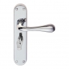 Plain, shaped backplate with rounded ends. A smooth round bar lever which expands to a rotund end making this handle very easy to grasp. The handle has fabulous ergonomics fitting comfortably in hand and giving a good positive action in operation. Comes with a 10 year mechanical guarantee and is Fire door rated. Suitable for domestic and commercial use. Available in Lock, Latch, or Bathroom versions